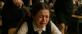 Učitelka si hned po příchodu všimla dlouhých vlasů své žačky, vytáhla nůžky a jednoduše