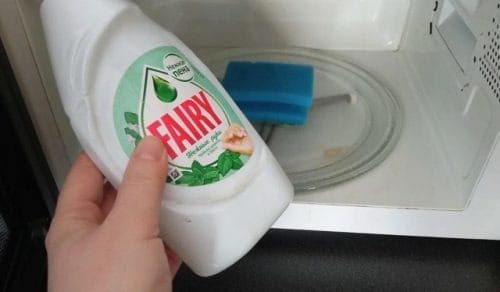 Na čištění mikrovlnné trouby funguje vlhká houba s trochou mycího prostředku. Když ji vložím dovnitř a na vysokou teplotu ohřeji na čtyři minuty, vzniklá pára pomáhá uvolnit nečistoty, což usnadňuje úklid vnitřku.