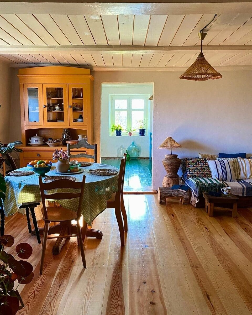 Tato chata připomíná spíše pokladnici starožitností než moderní bydlení. Se svou rustikální krásou a postaršími kusy nábytku je to skutečný krok zpět do minulosti.