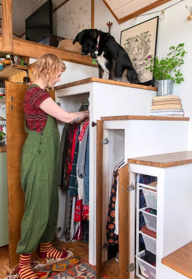 Podkroví slouží jako útulný spací kout pro Tii a Taiku, zatímco chytrá řešení úložného prostoru zajišťují efektivní využití prostoru v celém domě. Navzdory svým omezením Tii sní o přidání koupelny v budoucnu.