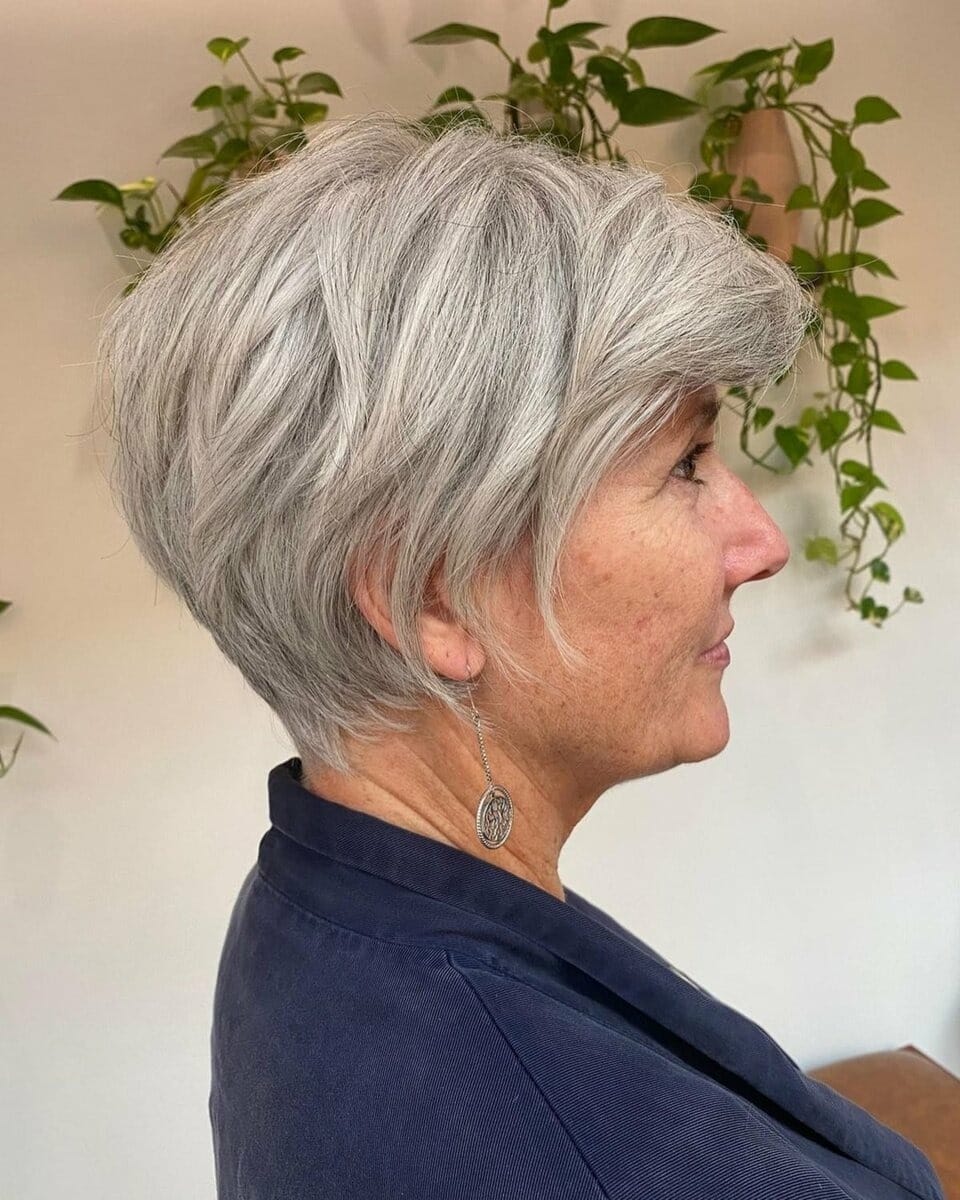 Pro ženy ve věku 60 let a více je k dispozici široká škála moderních účesů. Ať už se rozhodnete pro jemně vrstvený střih s ofinou, klasický bob, nebo ultra krátký pixie, klíčem je zvolit styly, které jsou snadné na údržbu a které doplní přirozené šedivé vlasy.