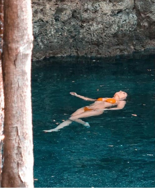 Salmina nedávná fotografie u bazénu v živě oranžových plavkách šokovala internet. Fotografie odhaluje její tonizované břišní svaly, což některé fanoušky přivedlo k pochybnostem o jejích tvrzeních o vynechání tréninků na střed těla.
