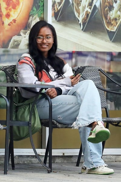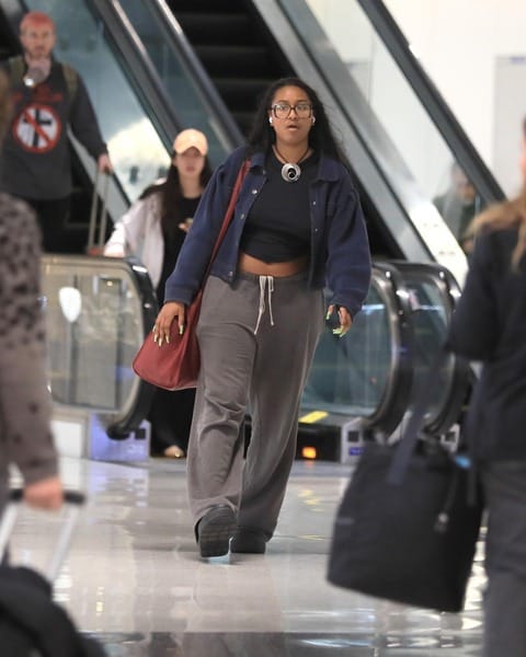 V posledních letech se Sashaina postava vyvinula. Vysokoškolský život jí zřejmě umožnil uvolněnější přístup k dietě, ale Sasha přijímá své tělo s důvěrou. Nedávné setkání na letišti ji zachytilo v sportovním outfitu – teplákách, krátkém topu a volné košili – doplněné o výrazný etnický pendant.