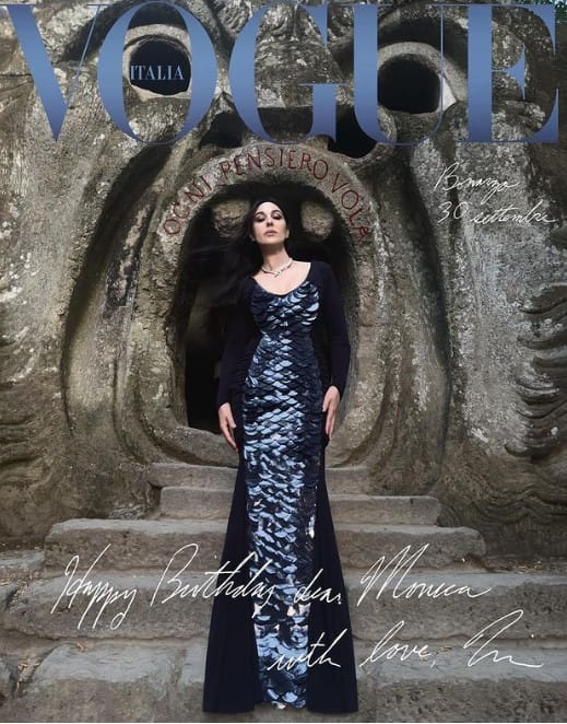 Bellucciho současný partner, Tim Burton, také oslavil tuto příležitost velkolepým gestem. Zorganizoval pro ni focení pro italskou Vogue, přičemž si vzal na starost jak roli fotografa, tak kreativního ředitele. Focení se konalo v kouzelném „Monster Parku“ v Bomarzu, Itálie, kde Bellucci pózovala mezi vysokými sochami mytologických bytostí.