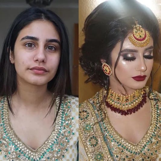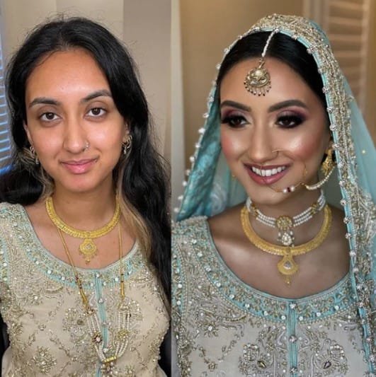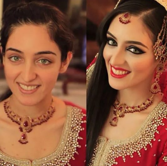 Svatební make-up a oděv pákistánských žen se výrazně liší od běžných evropských stylů. Místo bílých šatů si tyto nevěsty vybírají živé oblečení zdobené složitou výšivkou a vzory. Jejich make-up obsahuje výrazné barvy, včetně živého rtěnky, prodlouženého a širokého očního linky, štědrého konturování a tvářenky. Často je součástí soupravy také nosní kroužek, který nese symbolický význam. Celkově tyto svatební vzhledy představují fascinující odklon od běžného.