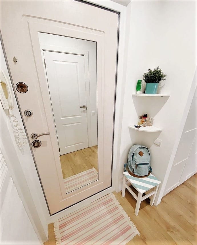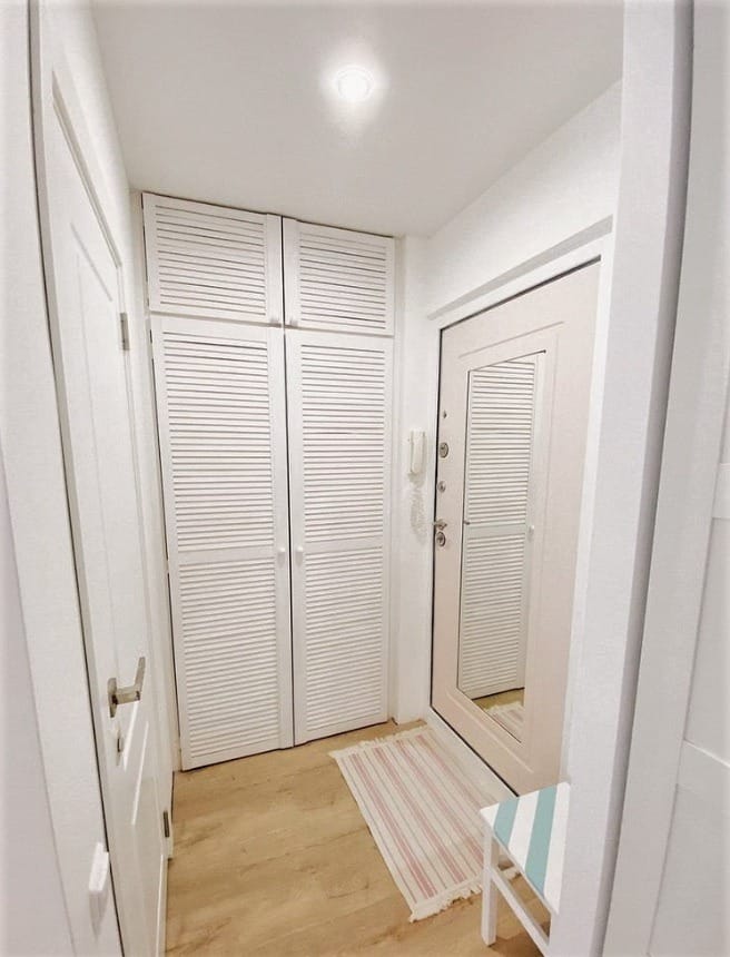 Zatímco si sami vyvíjeli design a prováděli rekonstrukci, vložili do každého detailu kousek své duše, ačkoli u některých složitějších úkolů museli požádat o pomoc (např. výměna potrubí, oken, elektroinstalace). Velikost bytu byla skromných 46,6 čtverečního metru, ale rodině se podařilo proměnit tento prostor na skutečně útulný byt. Předsíň, která byla výchozím bodem této cesty ke změnám, byla proměněna k nepoznání.