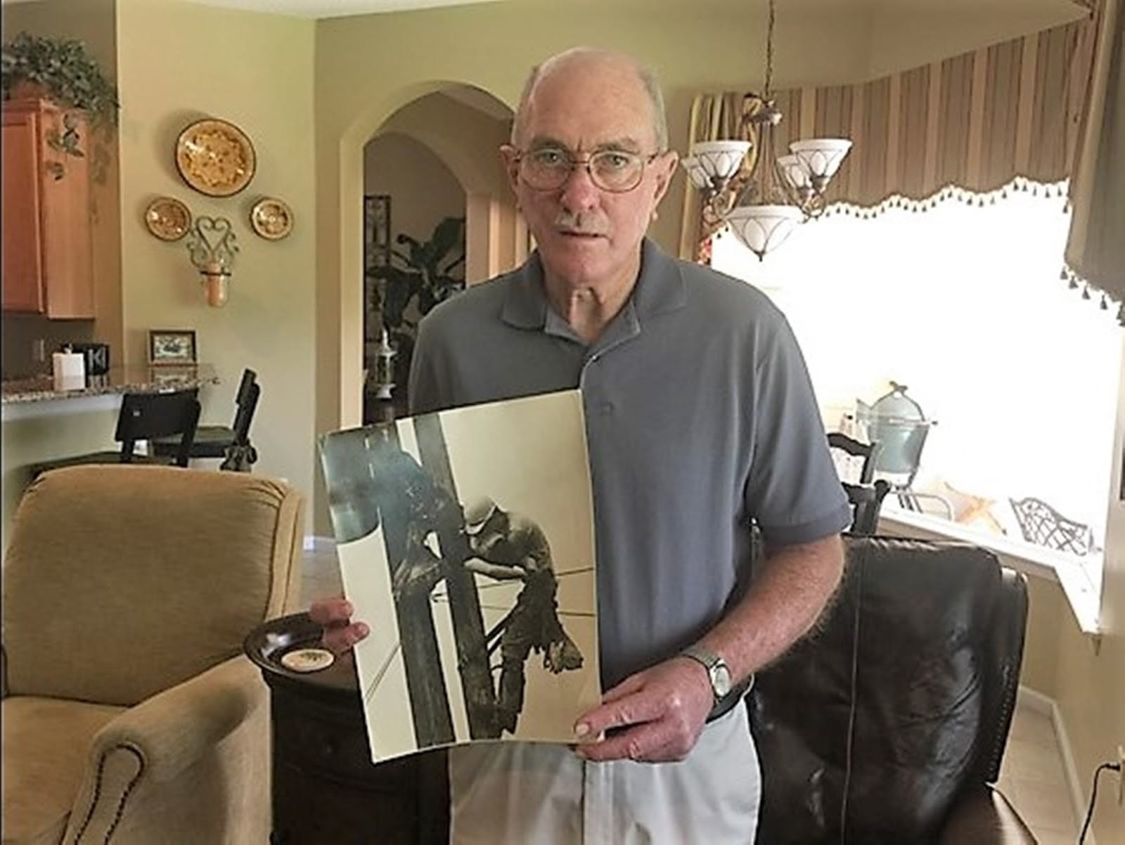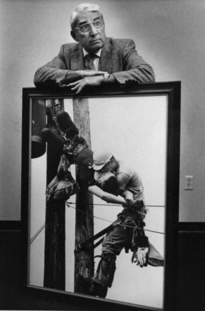 Tato fotografie je pozoruhodným a dojímavým okamžikem zachyceným v dějinách fotografie. Zobrazuje scénu naléhavosti a hrdinství, kde jeden muž poskytuje kardiopulmonální resuscitaci (KPR) svému elektrošokem zasaženému kolegovi, který visí vysoko na sloupu elektrického vedení.