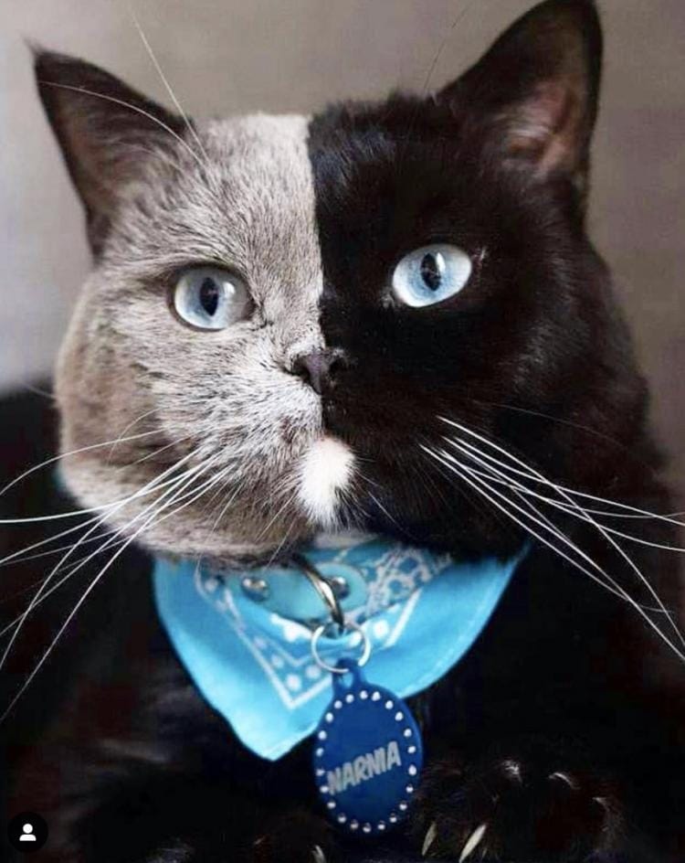 Seznamte se s Narnií, tříletým kocourem žijícím ve Francii se Stephanie Jiminezovou. Díky svému jedinečnému vzhledu si Narnia získal velkou popularitu na sociálních sítích. Tento modrooký krasavec má polovinu obličeje černou a druhou šedou, což z něj udělalo skutečnou „hvězdu“ internetu.