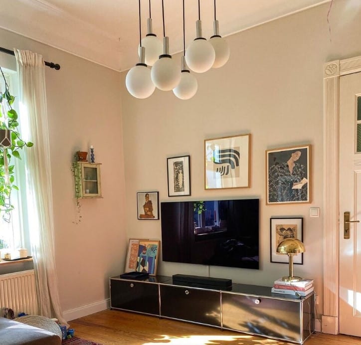 Stěny jsou vyzdobeny pestrou paletou obrazů, které přidávají prostoru charakter a osobnost.