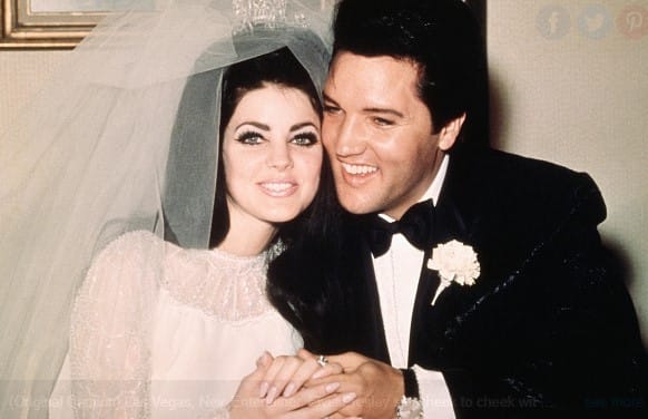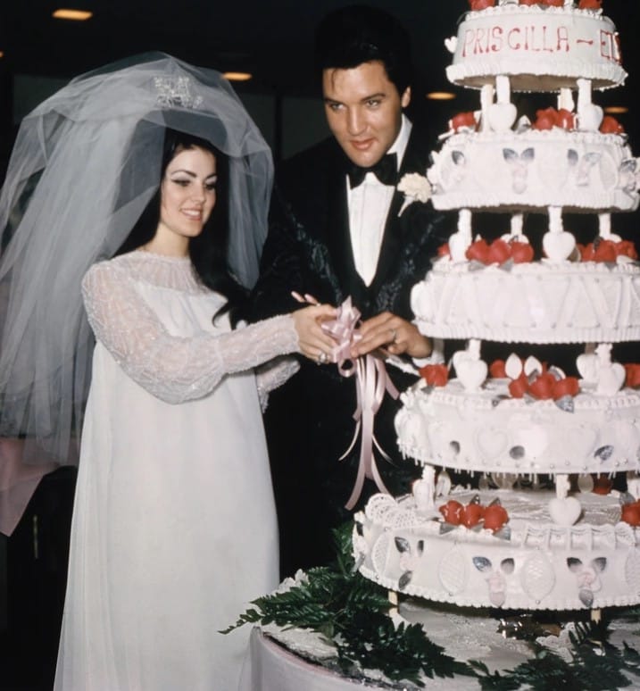 Na svatební den s Elvisem Presleyem oblékla Priscilla skromné, ale elegantní dlouhé bílé šaty s průhledným vrškem a rukávy zdobenými perlami. Co bylo překvapivé, je fakt, že Priscilla se rozhodla pro koupi šatů z obchodního regálu místo objednávky od renomovaného návrháře. V otevřeném rozhovoru přiznala, že se vydala nakupovat svatební šaty v převlečení, s blond parukou a falešnou identitou, aby si zachovala soukromí. Po jediné zkoušce se rychle rozhodla pro tento model, jakoby ji okouzlil od prvního pohledu.