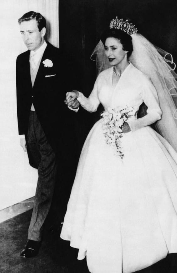 Další významné svatební šaty v královské kolekci jsou ty, které oblékla princezna Margaret. Dne 6. května 1960 se provdala za britského fotografa a filmaře Antonyho Charlese Roberta Armstrong-Jonese v dlouhých hedvábných organzových šatech od Normana Hartnella. Šaty, ozdobené minimalním krystalovým zdobením, elegantně podtrhly štíhlou postavu princezny Margaret. I když mohou na první pohled působit skromně pro svatební róbu, jsou příkladem jednoduchých, ale fascinujících šatů, které upoutají pozornost.