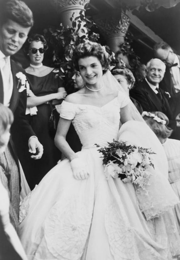Svatební šaty Jacqueline Bouvier, které oblékla na svatbu s Johnem F. Kennedym, byly navrženy afroamerickou návrhářkou Ann Lowe. Byly vyrobeny z slonovinového hedvábného taftu a měly nádherný zakřivený výstřih a objemnou, kulatou sukni. Zajímavé je, že původní šaty navržené Lowe téměř zmizely v záplavách, které poškodily návrhářovu dílnu, a zničily původní šaty i devět dalších modelů pro tuto příležitost. I přesto Lowe a její tým usilovně pracovali osm dní, aby šaty obnovili včas na svatbu. Ačkoli byly šaty široce chváleny, Jacqueline později přiznala, že měla určité výhrady k některým aspektům šatů, konkrétně k výstřihu, který nezdůrazňoval její postavu, a sukně jí připadala jako „stínidlo“.