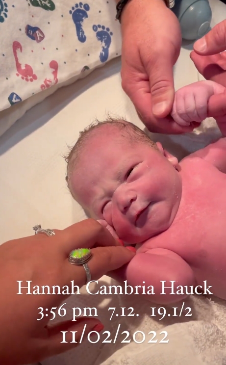 Dívce bylo dáno jméno Hannah, což pro rodinu mělo zvláštní význam. Jeff vzpomínal na okamžik po přenosu embrya, kdy byla Nancy „probuzená uprostřed noci“ malým hláskem, který řekl: „Jmenuji se Hannah,“ což potvrdilo pohlaví miminka. Cambria později zjistila, že toto jméno má podobný význam jako Nancy, což bylo dokonalou poctou babičce, která těhotenství umožnila.