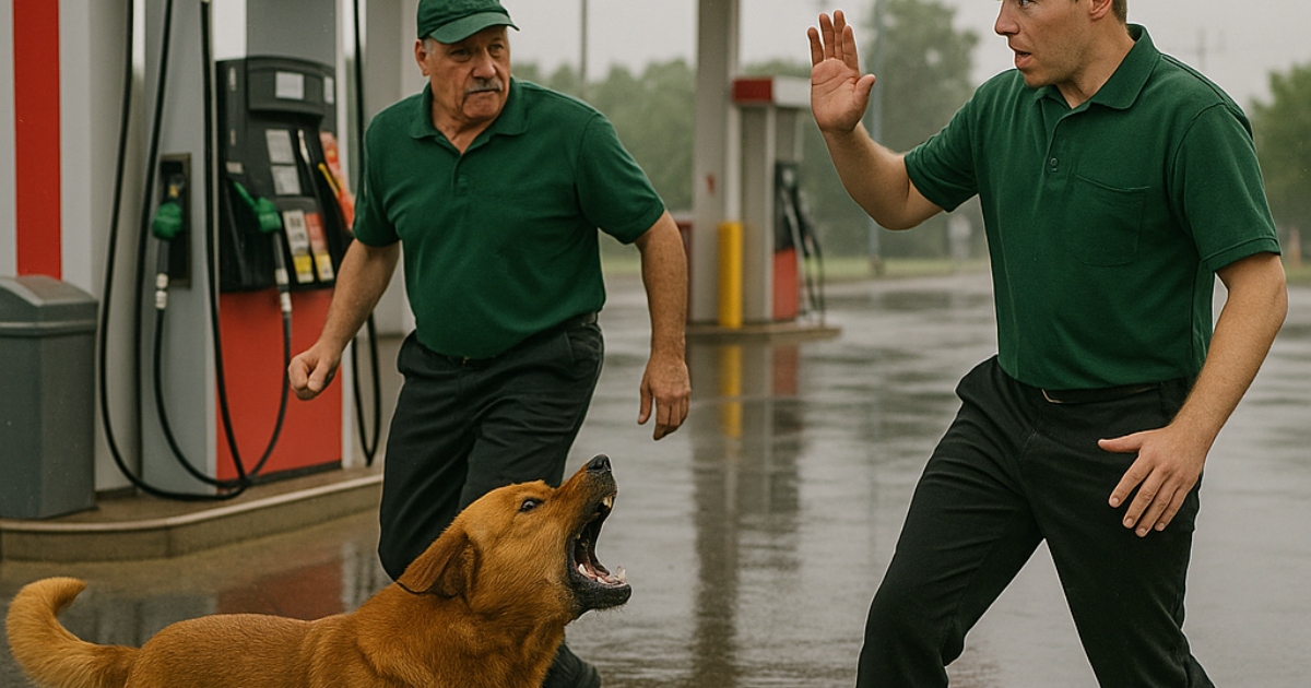 Pak jejich rozhovor přerušil hlasitý štěkot. Otočili se a spatřili rezavého psa stojícího na mokrém asfaltu u benzínové pumpy, který štěkal naléhavě, jako by jim chtěl něco říct. Zpočátku to vypadalo jako otrava běžného toulavce. Ale během několika sekund bylo jasné, že něco není v pořádku. Pes se na ně upřeně díval. Když se přiblížili, štěkot sílil a pes na ně skočil. Jeden z mužů instinktivně zvedl ruku, jako by se bránil.