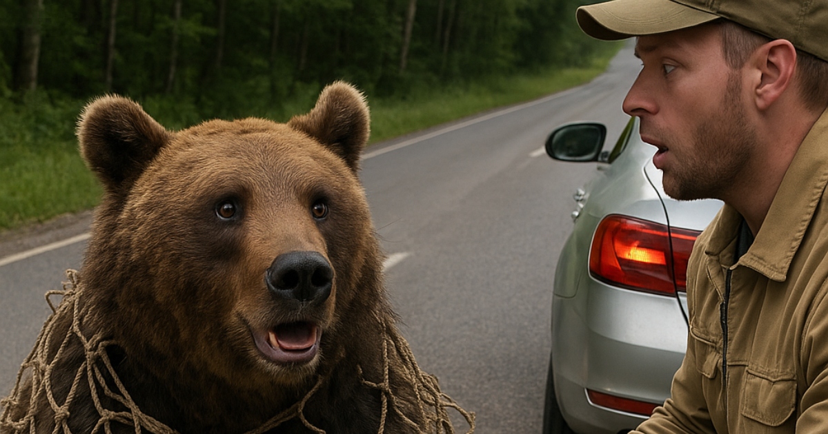 Viděl jsem medvěda uvězněného v síti u krajnice. Zastavil jsem, abych pomohl — a to, co se pak stalo, mě doslova ohromilo 😱😱