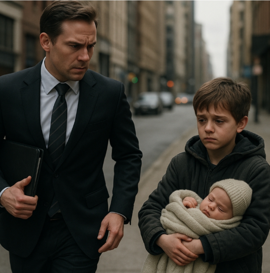 Igor se zastavil. Před ním stál hubený chlapec — bledý, se špinavou tváří, v šatech, které mu byly příliš velké. V náručí držel miminko zabalené v tenké dece.