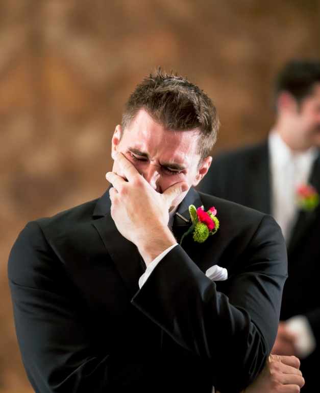 Ženichovi okamžitě vyhrkly slzy – zakryl si obličej dlaní, protože nemohl potlačit nával emocí.
