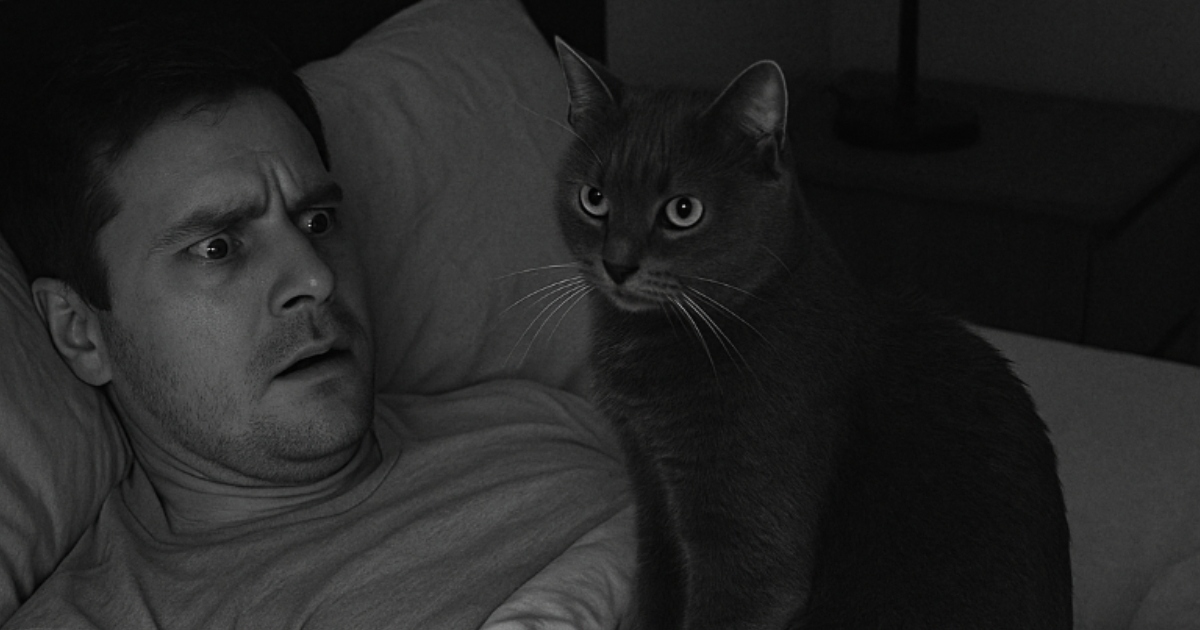 Uprostřed noci jsem se probudil s tíhou na prsou. Kocour seděl přímo na mně, nehýbal se a zíral mi do obličeje. Jeho pohled byl až příliš vnímavý — téměř lidský. Měl jsem husí kůži.