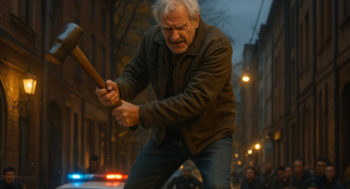 Na střeše bílého dodávkového auta stál starší muž. V obou rukou držel těžké kladivo a s každým úderem proměňoval vůz v hromadu pokrouceného plechu. Kov zavrčel, střecha praskala, sklo se rozsypalo a z muže s každým úderem vytryskl potlačený výkřik – směs bolesti, zoufalství a šílenství.