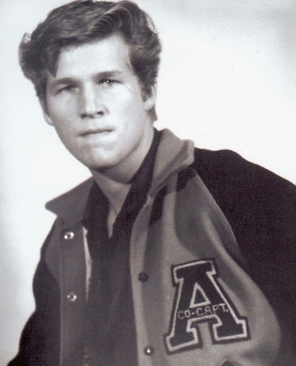 Jeff Bridges, narozený v roce 1949 do legendární herecké rodiny Bridges v Los Angeles, se stal jedním z nejuznávanějších a nejvšestrannějších herců Hollywoodu. Na fotografii jako žák deváté třídy na Brentwood Academy v roce 1964 byl Bridges už součástí dědictví zábavního průmyslu – jeho otec Lloyd Bridges a bratr Beau Bridges mu byli vzory. Od útlého věku byl ponořen do herectví, což položilo základy jeho kariéře, která trvá více než šest desetiletí.