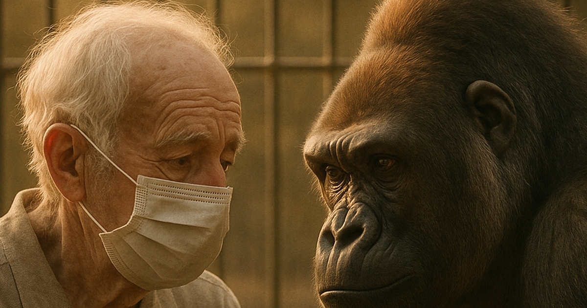 V den setkání ho přivezli na nosítkách, zabalili do deky. Sotva dýchal, ale na tváři se mu objevil slabý úsměv. Ošetřovatelé otevřeli dveře výběhu a opatrně ho přiblížili. Gorila seděla zády k nim, klidná.