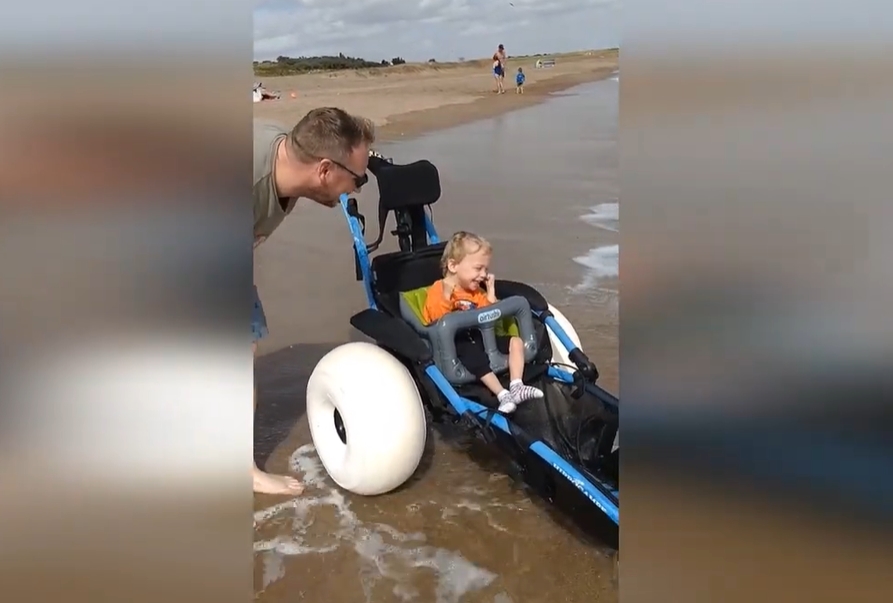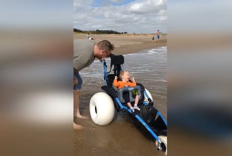 A když se jeho kola konečně dotkla vln, stalo se něco úžasného. Joeyho smích — jasný, nekontrolovatelný, nakažlivý — naplnil vzduch. Moře kolem něj šplouchalo, jeho sourozenci si hráli poblíž a rodiče sledovali se slzami v očích, jak radost zaplavuje všechny kolem. Video z toho okamžiku brzy obletělo svět, ale pro jeho rodinu to nebylo o pozornosti. Šlo o pocit sounáležitosti. O to vidět svého syna prožívat něco, co by měl každý dítě — jednoduchou, uzdravující radost ze hry.