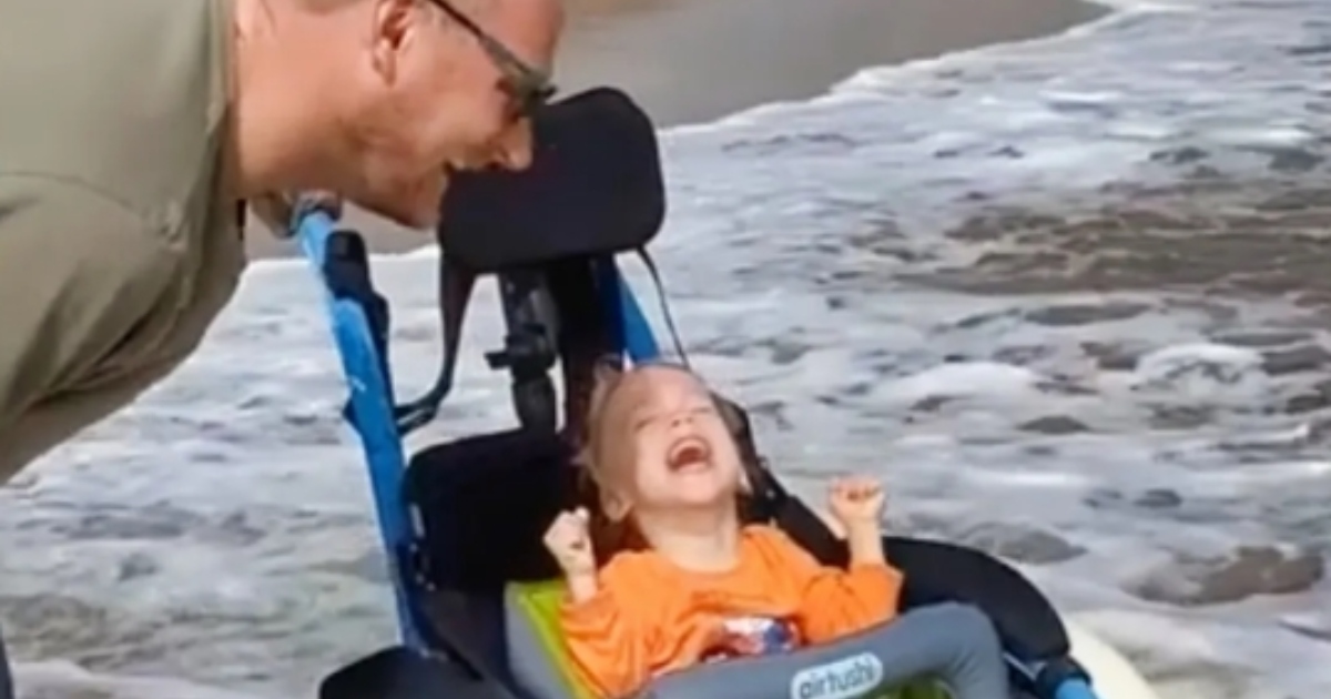 A když se jeho kola konečně dotkla vln, stalo se něco úžasného. Joeyho smích — jasný, nekontrolovatelný, nakažlivý — naplnil vzduch. Moře kolem něj šplouchalo, jeho sourozenci si hráli poblíž a rodiče sledovali se slzami v očích, jak radost zaplavuje všechny kolem. Video z toho okamžiku brzy obletělo svět, ale pro jeho rodinu to nebylo o pozornosti. Šlo o pocit sounáležitosti. O to vidět svého syna prožívat něco, co by měl každý dítě — jednoduchou, uzdravující radost ze hry.