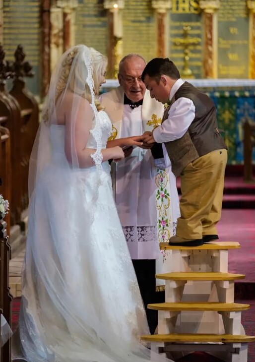 Muž vysoký pouhých 109 centimetrů si vzal ženu, která byla výrazně vyšší než on, a tím se zapsali do světových rekordů. Na svatební den čekal ženich na nevěstu v kostele… stát musel však na stoličce. O tři roky později se páru narodila dcera.
