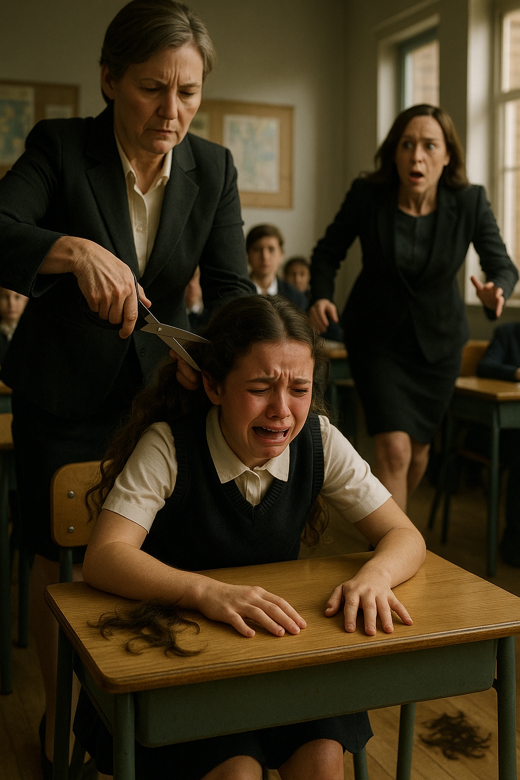 Když zazvonilo a učitelka vešla do třídy, její zrak okamžitě sklouzl na dívčinu hřívu. Ten vzhled nesnášela. S kamennou tváří dívku často napomínala a vytýkala jí údajně „neupravené“ oblečení i účes. Dívka dělala, že to neslyší. Maminka jí vždy říkala: „Na maličkosti neplýtvej energií.“ Po vyučování k ní však učitelka přišla a pronesla: „Vlasy musíš mít čisté. Takhle působíš špatně.“ Dívka klidně odpověděla, že si je upravila ještě včera večer. Učitelka ale bez rozmyslu popadla nůžky a začala stříhat, až na podlahu padaly křivé chomáče vlasů. Ve třídě zavládlo absolutní ticho. Jeden z žáků si scénu nahrál na telefon — a video se bleskurychle rozšířilo po internetu.