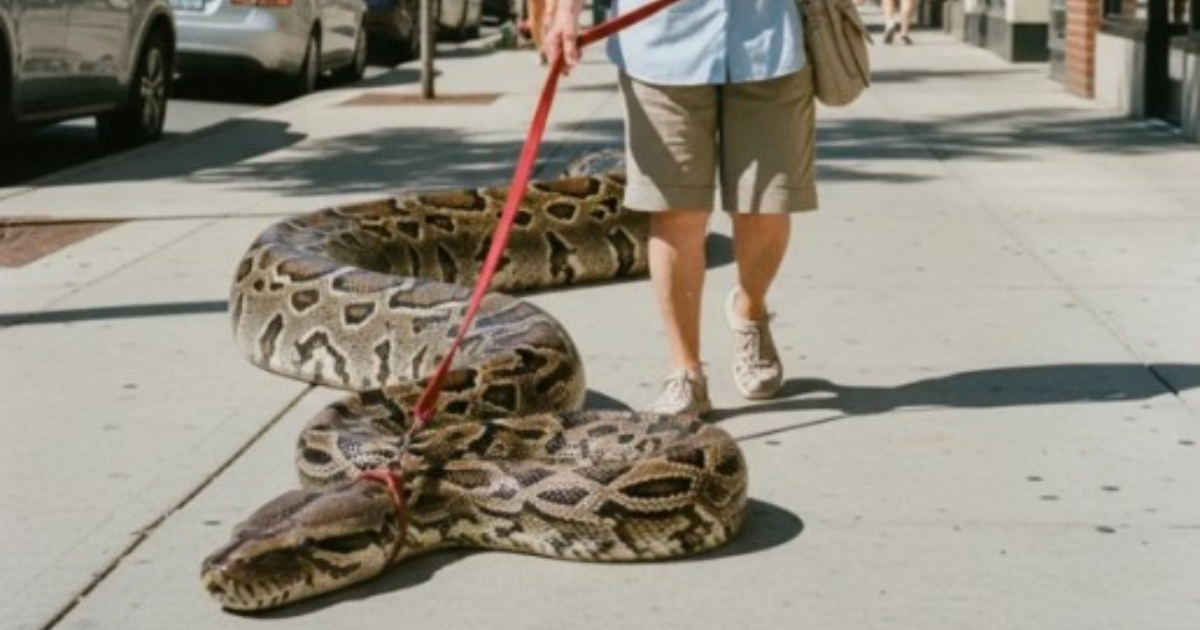 Uprostřed dne, na nejrušnější ulici města, se obyvatelé setkali s pohledem, na který nikdy nezapomenou. Sedmdesátiletá důchodkyně klidně vedla svého domácího mazlíčka na vodítku. Ale nebyl to pes ani kočka – byla to obrovská krajta, která se pomalu plazila po asfaltu. Lidé kolem utíkali v panice, zatímco někteří začali tento neuvěřitelný okamžik natáčet na své telefony.