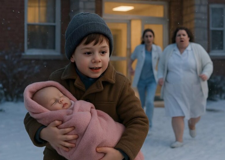 Najednou si jedna sestra všimla situace a zařvala – v nemocnici vypukla panika. Malý chlapec ignoroval všechny volání a pevně tiskl miminko k sobě, přestože venku panovalo mrazivé zimní počasí. Ostraha, lékaři a vyděšený otec se rozběhli za dítětem, které klouzalo po chodbě a snažilo se uniknout. Všichni se děsili o zdraví miminka a riziko podchlazení.