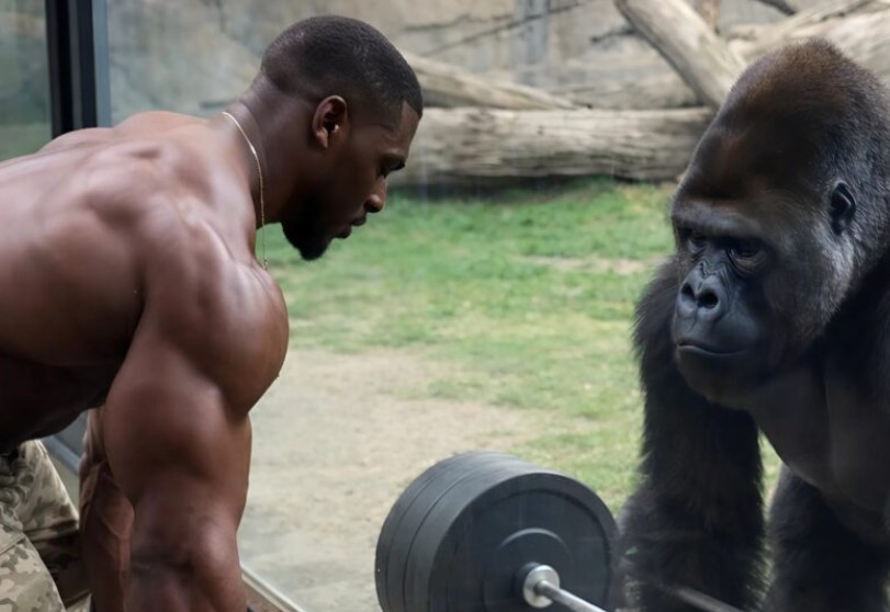 Silný sportovec se rozhodl natočit působivé video a získat co nejvíce zhlédnutí tím, že „zavede soutěž“ s gorilou . Chtěl předvést, jak sám zvedá těžkou činku, a očekával, že gorila tento pohyb napodobí. Jenže když natáčení začalo a gorila se přiblížila k čince, stalo se něco tak nečekaného, že jak diváci, tak sportovec zůstali úplně v šoku…