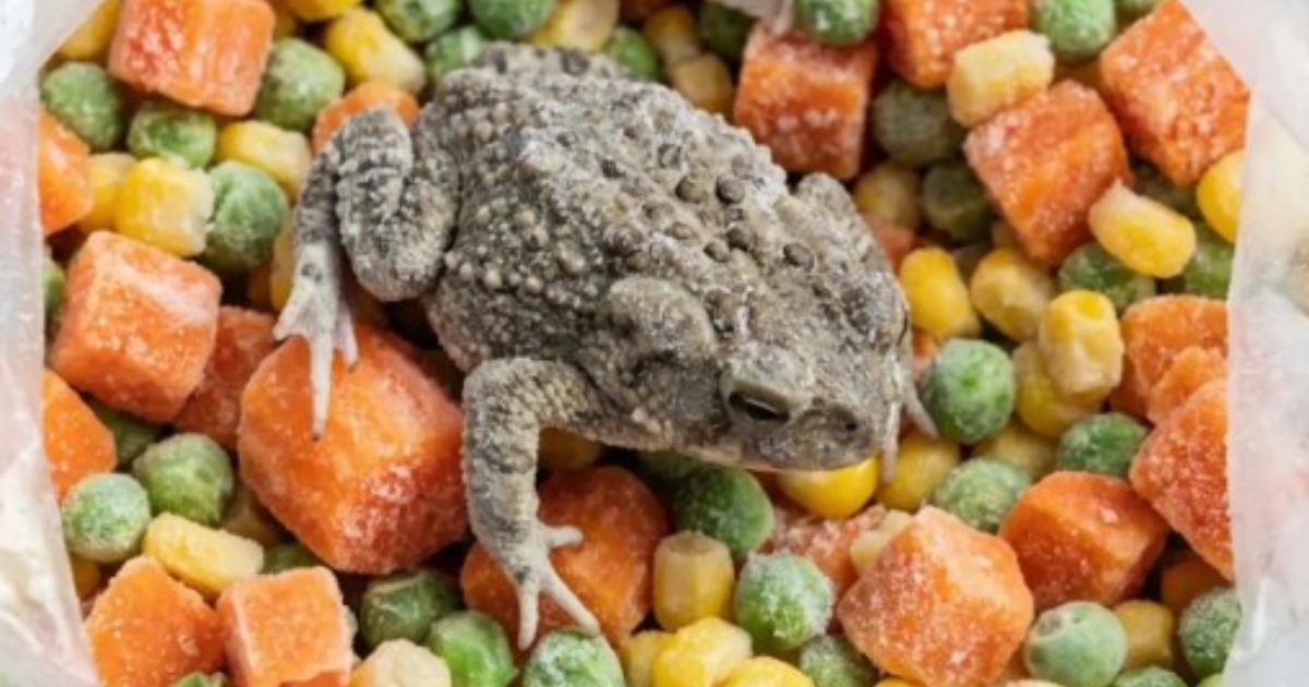 Když mi došlo, že to není zelenina, ztuhla jsem na místě. Když jsem lžící odhrnula ostatní zeleninu, spatřila jsem malé končetiny připomínající prsty ruky. Hned za nimi se mezi ledovými krystalky objevila silueta hlavy. Byl to malý, úplně zmrzlý žabák. Zjevně se do balíčku dostal během sklizně na poli a zmrzl společně se zeleninou, aby nakonec týdny ležel na regálech supermarketu.