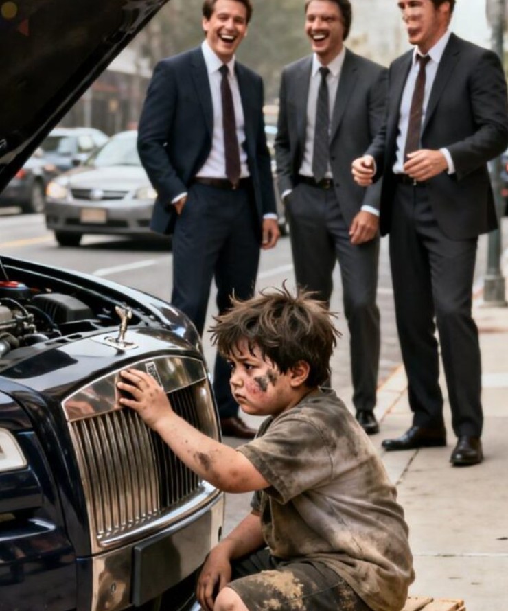 Klid na unavené tváři dítěte kontrastoval s pýchou mužů. „Pokud dovolíte, mohu pomoci,“ řekl, a muži v luxusních oblecích se začali smát. Jeden z nich se posměšně ušklíbl: „Podívejte, náš zachránce je tady! Ty snad oživíš motor?“ Miliardář jen pokrčil rameny, jako by sledoval komedii, a nechal chlapce přistoupit. Nikdo si nepředstavoval, co malé ruce dokážou.