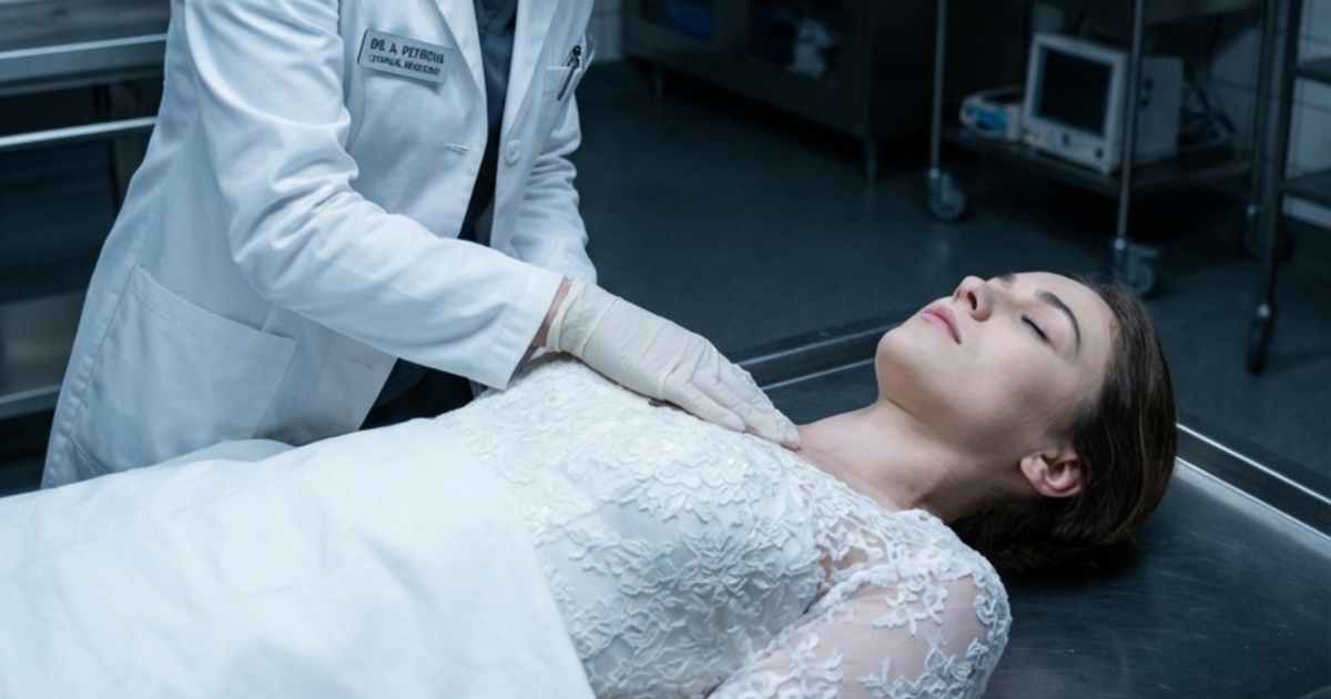 Během svatebního obřadu došlo k tragédii: nevěsta náhle zkolabovala a byla prohlášena za mrtvou. Když její tělo v bílých krajkách převezli do márnice, mladá zřízenkyně si všimla něčeho děsivého. Navzdory diagnóze otravy měla dívka stále narůžovělé tváře a její kůže byla na dotek teplá. Když přiložila ucho k její hrudi, zaslechla slabý, ale pravidelný tlukot srdce. Okamžitě zalarmovala službukonajícího lékaře, ten ji však hrubě odbyl s tím, že jde o posmrtné svalové kontrakce a pouhou začátečnickou představivost.