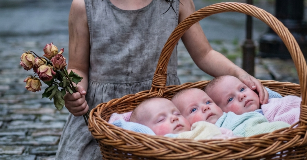Nad Santa Esperanza vytrvale pršelo a sedmiletá Isabella Cruz marně nabízela kolemjdoucím povadlé květiny, aby získala alespoň jeden peníz. Sama opuštěná a v promáčených šatech bloumala ulicemi bez cíle. V parku však narazila na něco nečekaného: luxusní proutěný koš přikrytý drahou dekou. Když jej odkryla, uviděla trojčata s neuvěřitelně modrými očima, která tiše plakala v chladném dešti. Isabella, která sama poznala hořkost samoty, se rozhodla, že je v tom nenechá, a s vypětím všech sil odnesla těžký koš do svého útočiště v opuštěném skladišti.