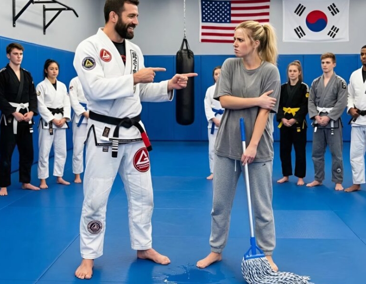 Toho úterního odpoledne však v tělocvičně panovalo zvláštní napětí. Uprostřed tatami zářil Jake, arogantní bývalý šampion, který si užíval obdiv přihlížejících. Potřeboval si však rýpnout do někoho slabšího, aby nasytil své ego. Jeho pohled padl na Rosu, která v rohu ždímala žlutý kbelík. „Hej, ty tam! S tou metlou!“ křikl s posměchem. „Nechceš si zkusit, jaké to je v ringu, nebo se bojíš, že si zlomíš nehet?“ Celá hala vybuchla smíchem, zatímco Jake na ni vyzývavě pokynul rukou.