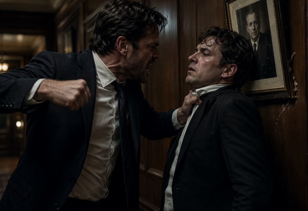 Dřevěné obložení chodby úpělo pod tíhou střetu a ten zvuk téměř zanikal v těžkém, trhaném dechu dvou mužů, kteří celý život soupeřili o stejný vzduch. Elias přitiskl svého bratra Juliana ke zdi takovou silou, až zarámovaná fotografie jejich zesnulého otce drnčela o omítku. Klouby měl bílé, jak svíral Julianův límec tak pevně, že hrozilo roztržení látky. Celé týdny v něm podezření hnisalo jako infekce, živené chybějícími zápisy v účetních knihách a šeptanými fámami v rodinné firmě. Elias byl přesvědčen, že Julian uléval peníze stranou, aby splatil své narůstající dluhy z hazardu, a zradil tak odkaz, který měli chránit společně.
