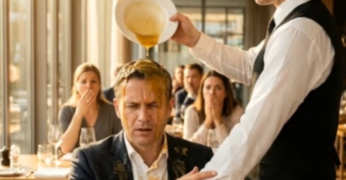 Číšník Julian, ostřílený profesionál, který zažil vše od rozlitého vína až po žádosti o ruku, ani nemrkl. Žádné cukání, žádné prosby o milost, žádný záblesk strachu v očích. Místo toho z něj vyzařoval mrazivý, až meditativní klid. S uvážlivou pomalostí, která působila téměř teatrálně, se Julian natáhl a zvedl těžkou porcelánovou misku s vlažnou polévkou. Aniž by přerušil oční kontakt, naklonil ji přímo nad mužovu hlavu. Krémová žlutá tekutina se přelila přes mužovy pěstěné vlasy, nasákla do hedvábné kravaty a vpila se do ramen jeho značkového saka.